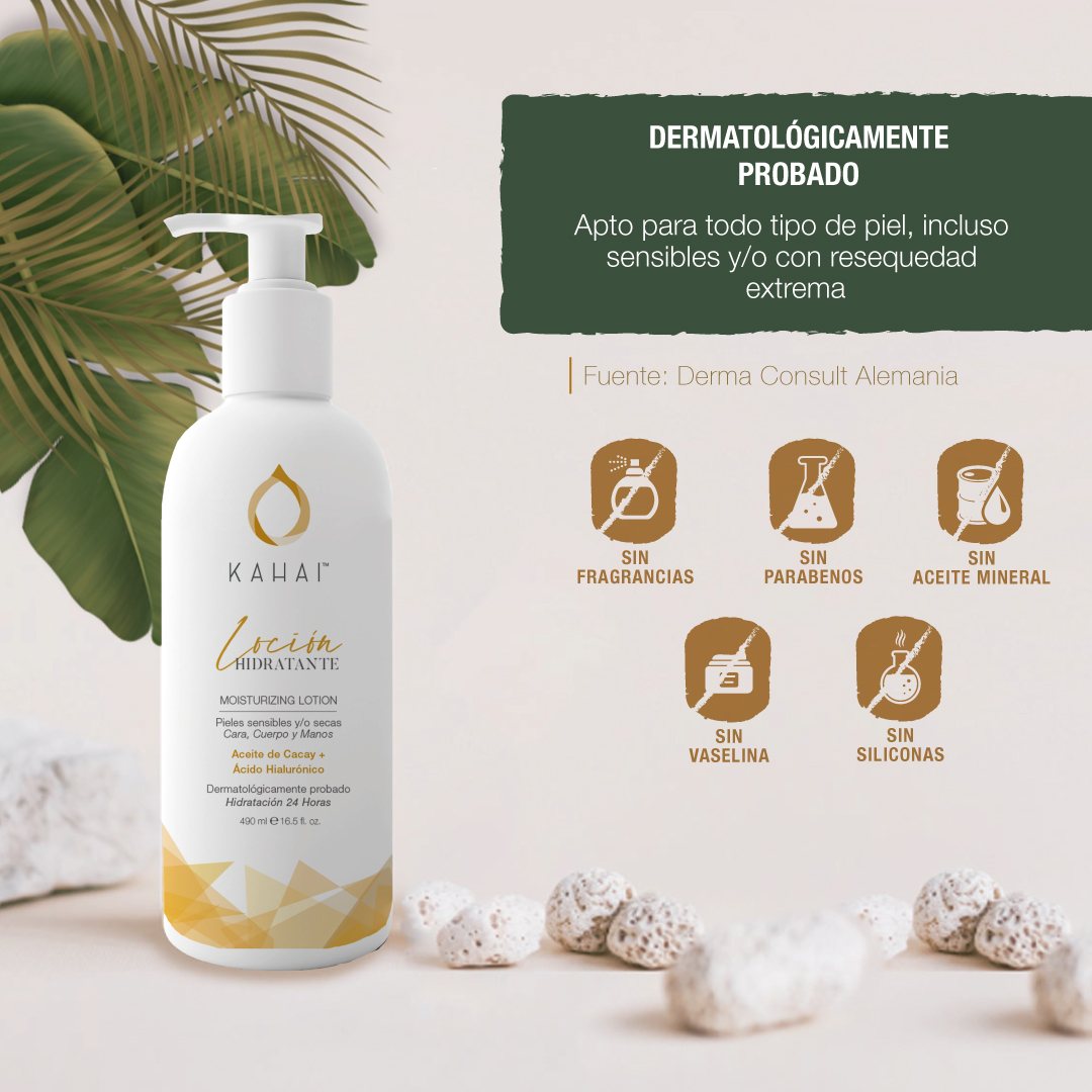 El poder natural del aceite de Cacay, el Ácido Hialurónico soluble, el Aloe Vera, Aceite de Coco y la manteca de Karité proveen un efecto de hidratación prolongada, alisando y aportando confort a pieles sensibles y/o con resequedad extrema.