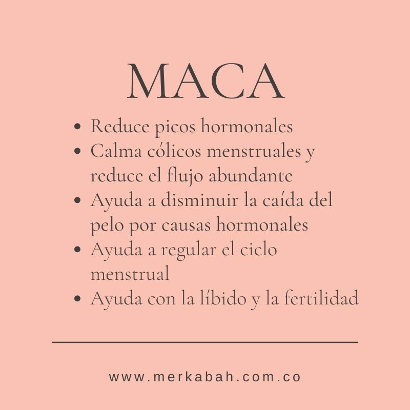 - Maca roja, para mujeres, en los temas hormonales. En los hombres para temas de próstata.